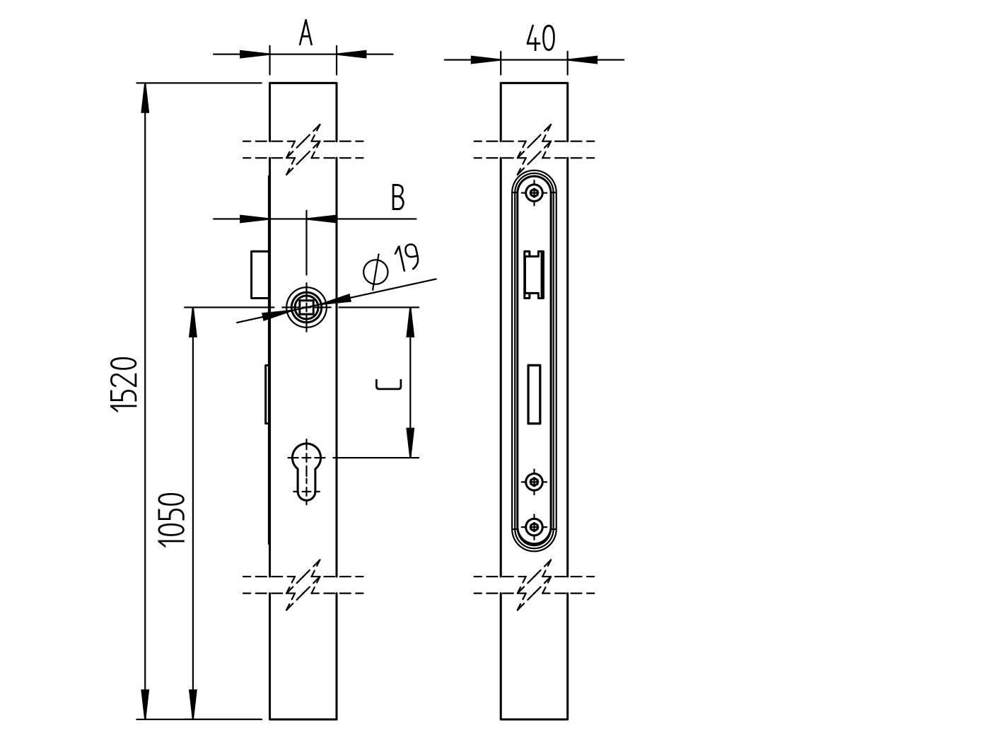 Schloßkasten-Set, ohne Türgriff JP60x40 B1/59-60x40