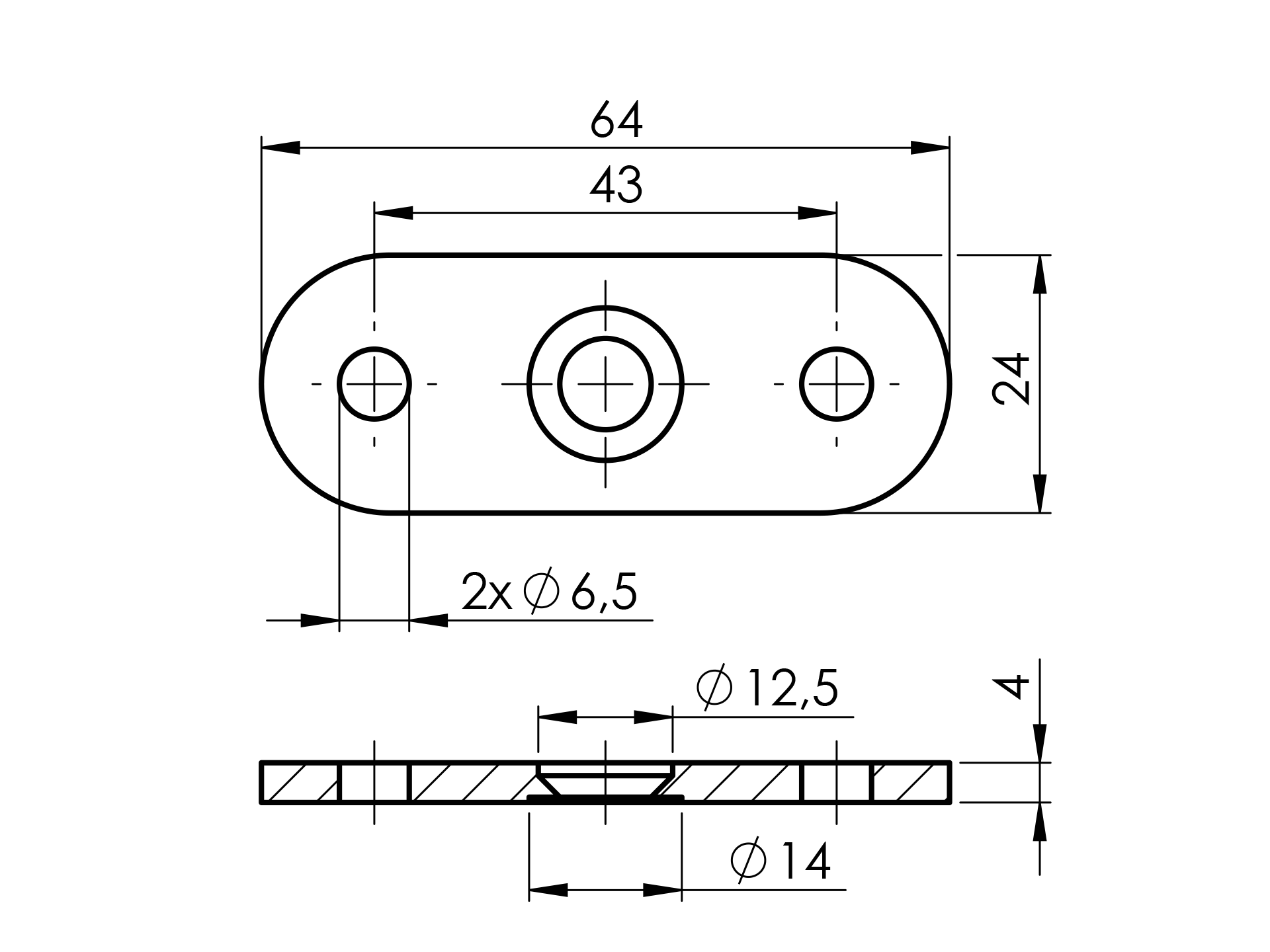 Handrail saddle - flat AISI316, 40x40x2/64x24mm A14/1800-000