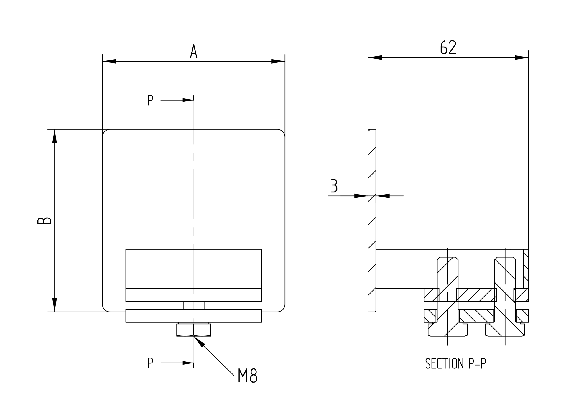 Cantilever Gate End Stop Zn, profile 70x70mm H/15P-70