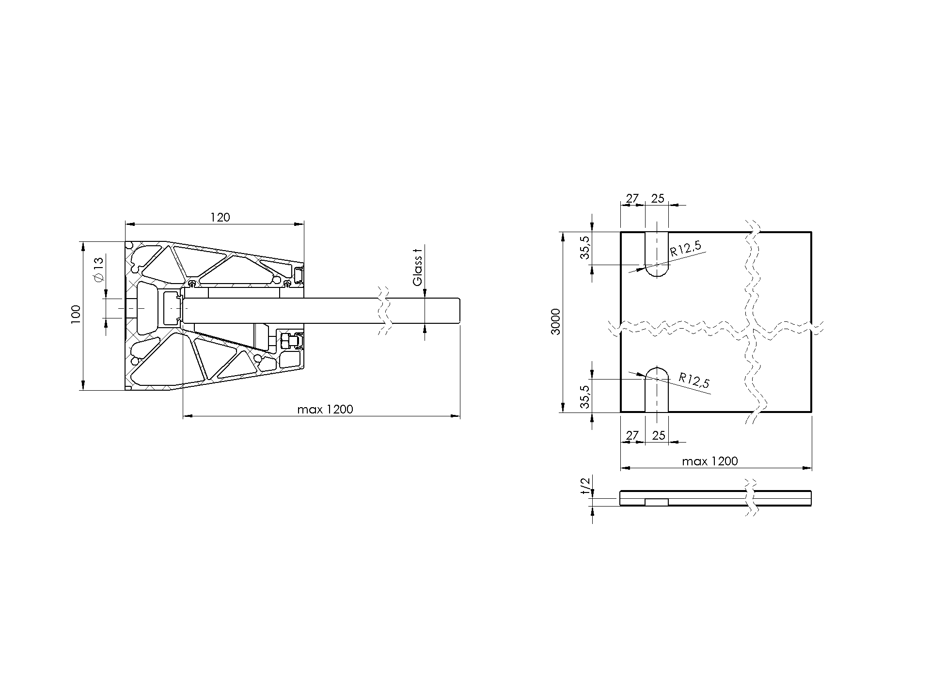 Cover for self-supporting glass canopy AL/PR7-3-6000-N-E