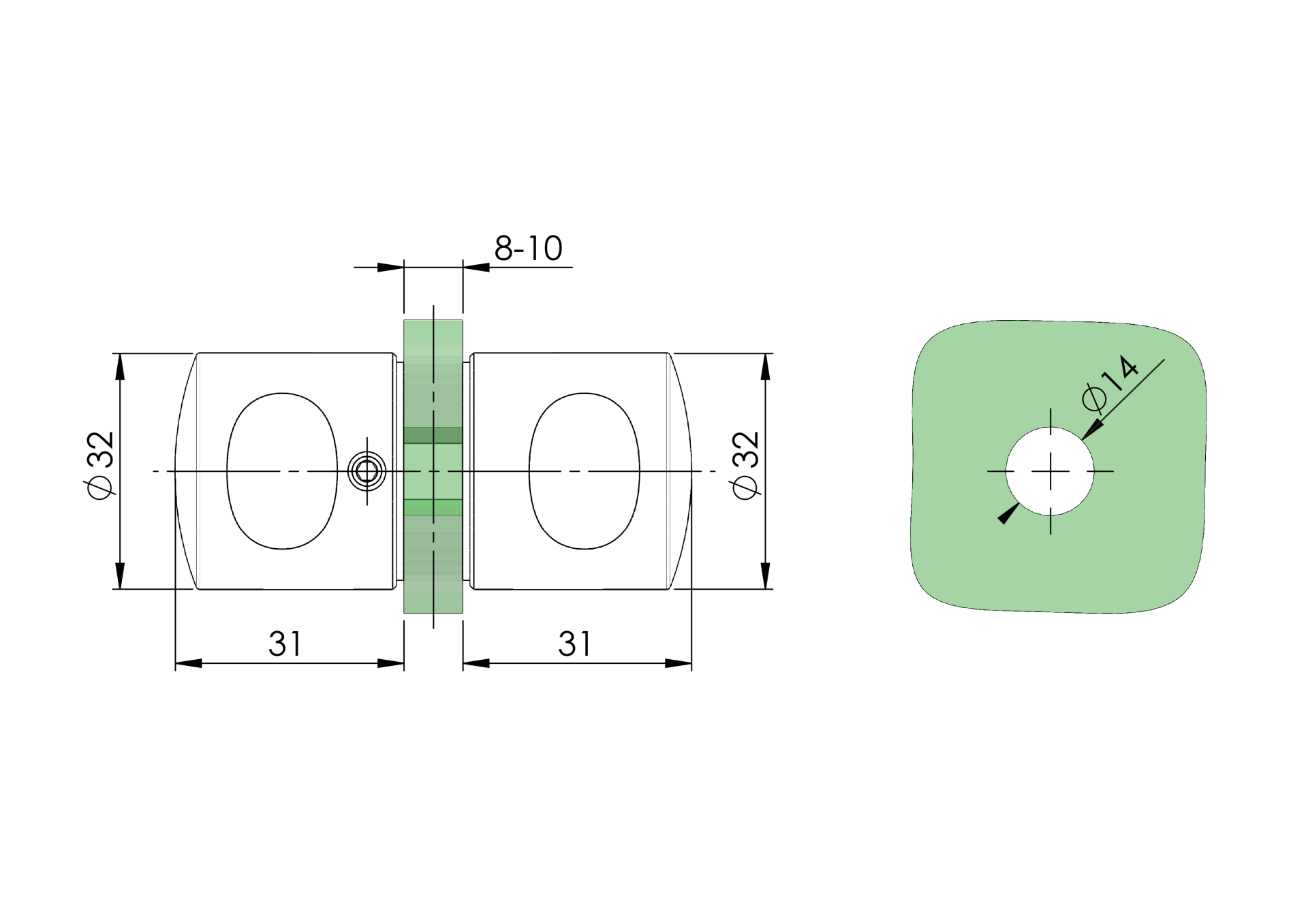 Brushed back-to-back knob AISI 304, K320, 32mm GS-304/M-926/S