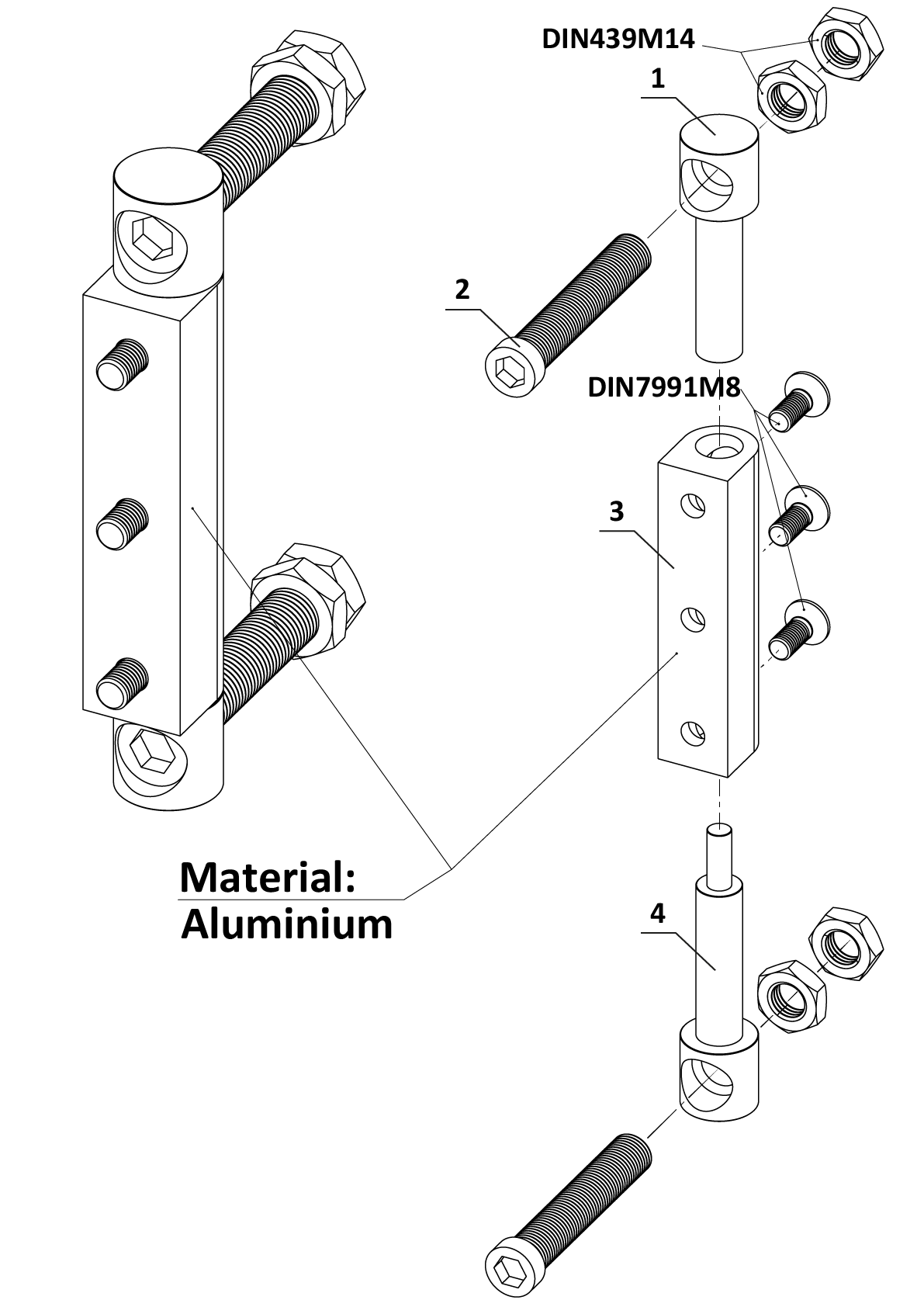 Verstellbares Scharnier zum Anschrauben, Edelstahl/Aluminium D8/67-2xM14